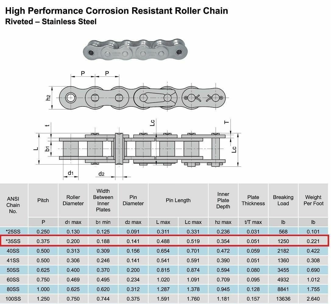 I purchased a high-quality NSI #35 SS Stainless Steel Roller Chain. Here are the exact details I looked for and why this was the perfect choice: